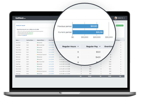 GetHired’s Time and Attendance system was built with payroll administrators in mind. Payroll teams can perform end-to-end management of time data including exceptions and adjustments.